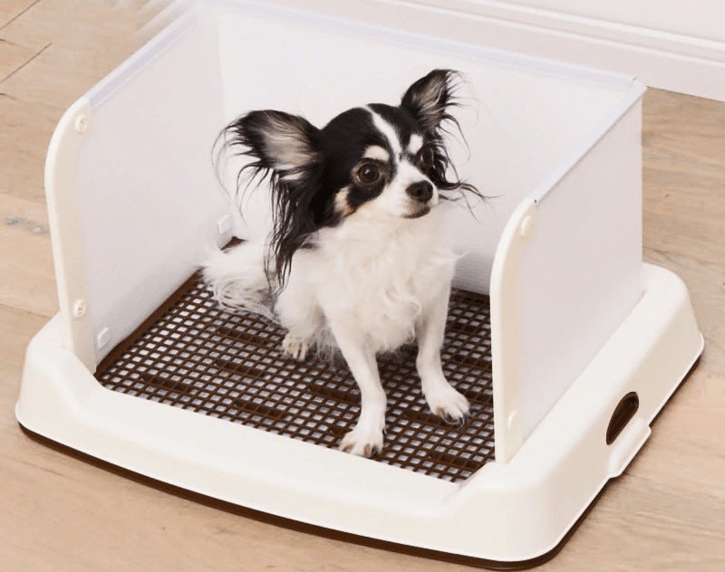• توالت سگ با سینی مخصوص: دارای شبکه‌ای برای جلوگیری از تماس ادرار با پای حیوان است.